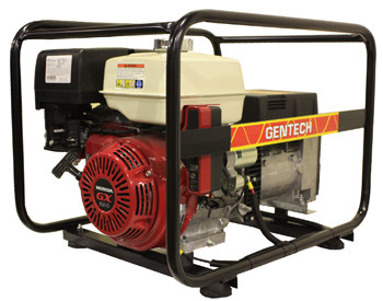 The Gentech EP8000HSRE, 8 kVA portable generator is powered by a Honda GX390 petrol engine. Featuring 6.5 litre fuel tank, giving 2.24 hours of operation at 80% load.